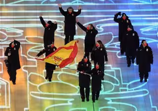 España salió en el puesto 31 de los 91 comités que desfilaron en el Estadio Nacional de Pekín, con una representación de 12 miembros, los abanderados Queralt Castellet y Ander Mirambell, junto a otros cinco deportistas -Javier Lliso, quien dibujó un corazón con sus dedos, Thibault Magnin, Nuria Pau, Olivia Smart, Adriá Díaz- y cinco oficiales, entre ellos el jefe del equipo, Cayetano Cornet.