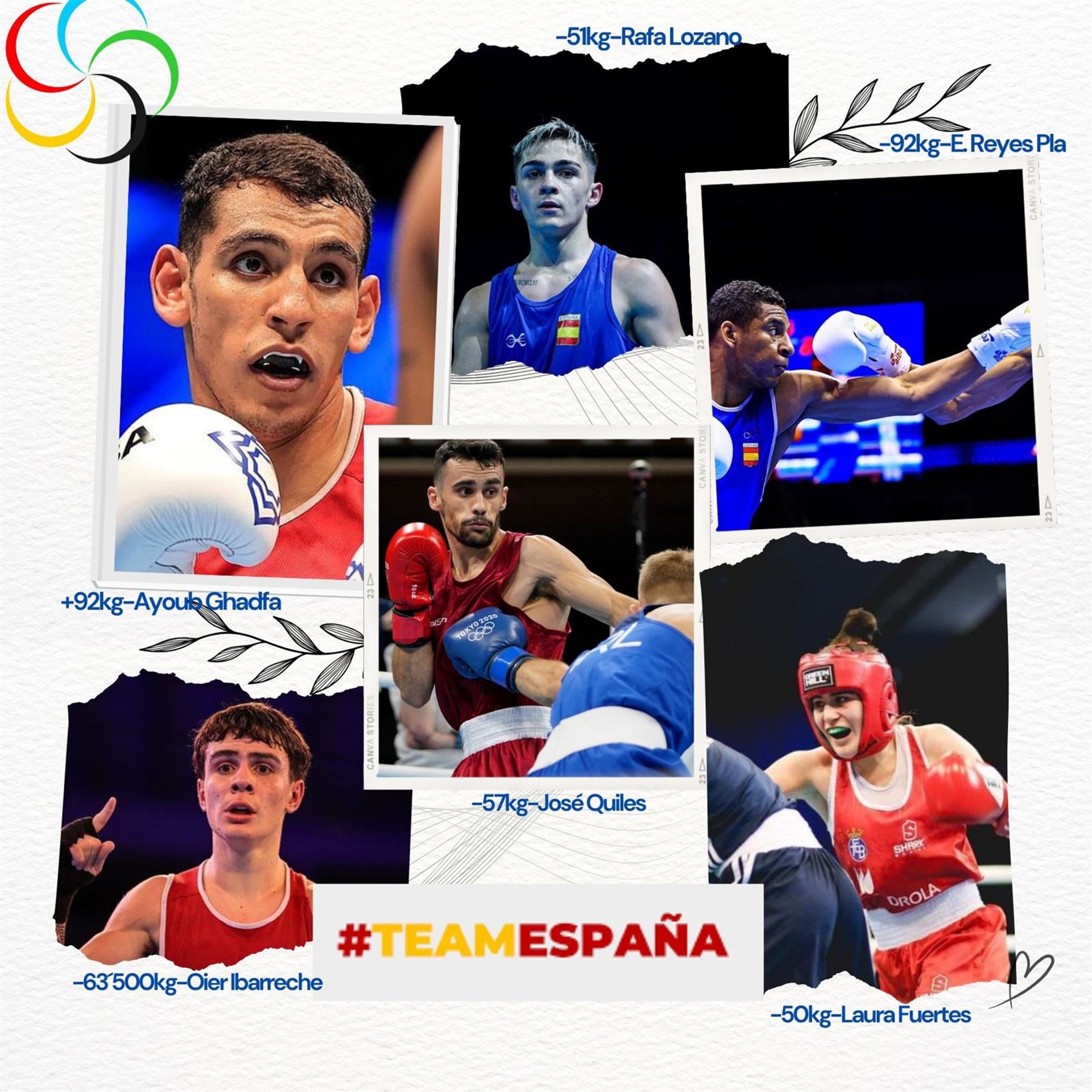 Los púgiles Rafael Lozano, José Quiles, Oier Ibarreche, Enmanuel Reyes y Ayoub Ghadfa Drissi El Aissaoui, y Laura Fuertes componen el equipo olímpico español en los Juegos de Paris 2024, que prepara la cita en Nancy (Francia) y Asís (Italia) ante de viajar a la Villa Olímpica el próximo 20 de julio.
