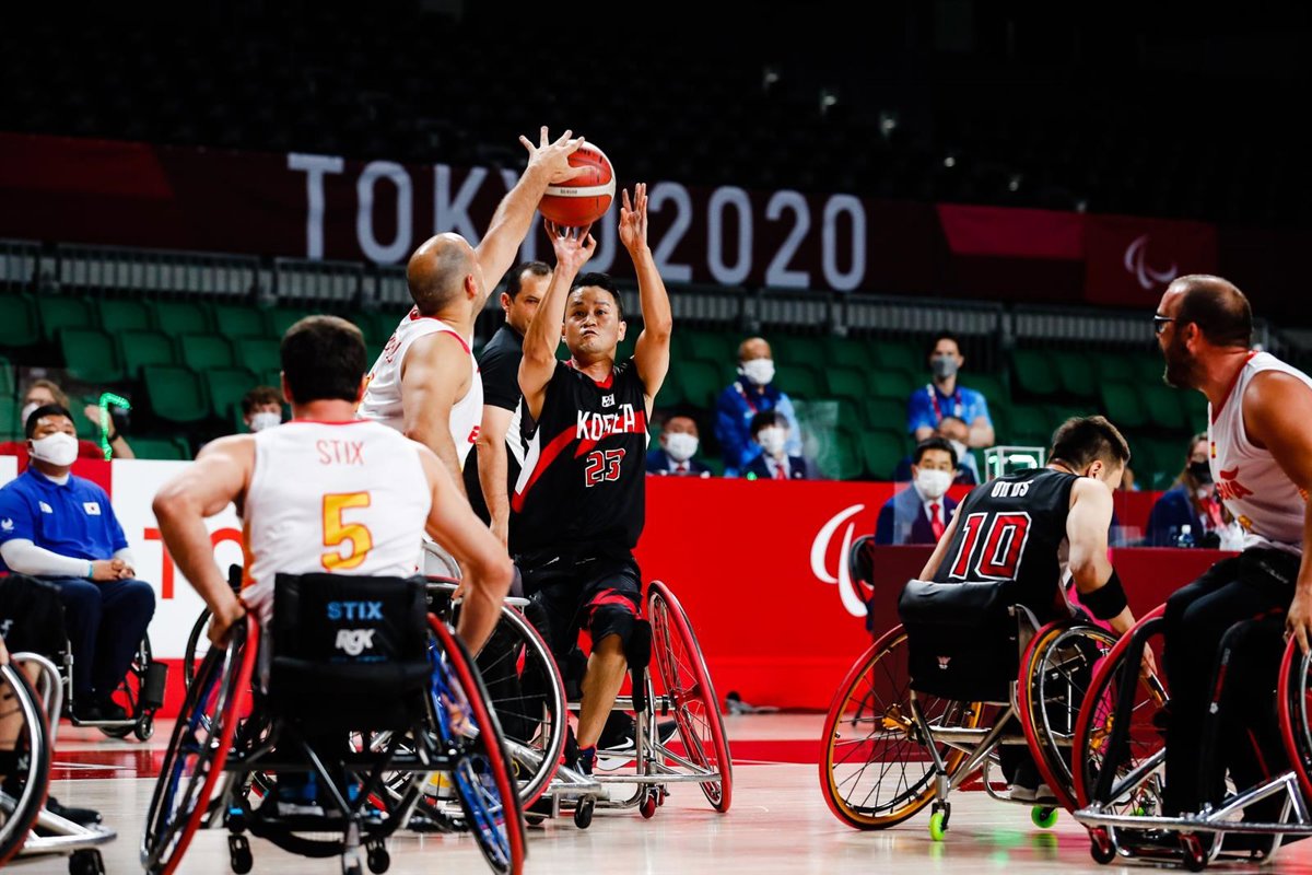 Imagen del partido España - Corea del Sur, correspondiente al grupo 4 del Baloncesto en silla de ruedas masculino de los Juegos Paralímpicos de Tokio - ISRAEL GARDYN/CPE