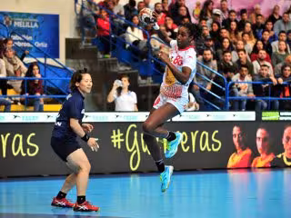 Archivo - Alexandrina Barbosa lanza a puerta en un amistoso entre España y Japón - RFEBM / J.L. RECIO - Archivo