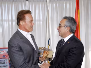 El exactor y exgobernador estadounidense Arnold Schwarzenegger ha visitado este sábado visitó al presidente del Comité Olímpico Español, Alejandro Blanco, en su paso por Madrid, donde presenta durante todo el fin de semana su propio festival del deporte, el I Arnold Classic Europe.