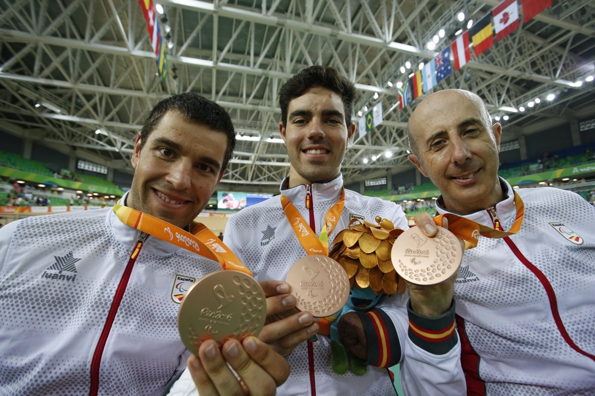 El equipo de velocidad de ciclismo en pista a logró la octava medalla para España en los Juegos Paralímpicos de Río de Janeiro al conseguir el bronce en la final B de las clases C1-5 mixta ante los Estados Unidos, firmando una positiva despedida del Velódromo.