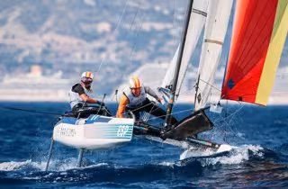 Por su parte, Tara Pacheco y Andrés Barrio se estrenaron en el campo de regatas de Marsella con una progresión ascendente y cerraron la jornada con un primero en la tercera regata. Los españoles sumaron un 12 como primer parcial, pero en la segunda manga mejoraron sus prestaciones con un octavo. En la tercera, dominaron sin oposición para lograr su primer triunfo. Los italianos Ruggero Tita y Caterina Banti, oro olímpico en Tokyo 2020, son líderes, por delante de los argentinos Mateo Majdalani y Eugenia Bosco y los finlandeses Sinem Kurtbay y Akseli Keskinen.