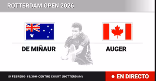 El tenista Australiano Alex de Minaur(8) se enfrenta en Final del torneo Rotterdam Open al tenista Canadiense Felix Auger-Aliassime(6) este domingo a las 15:30.