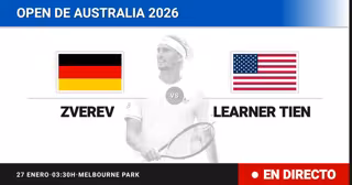 El tenista Alemán Alexander Zverev(3) se enfrenta en Cuartos de final del torneo Australian Open ATP al tenista estadounidense Learner Tien(29) este martes a las 03:30.
