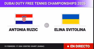 La tenista Croata Antonia Ruzic(67) se enfrenta en Cuartos de final del torneo Dubai Duty Free Tennis Championships a la tenista Ucraniana Elina Svitolina(9) este jueves a las 17:30.