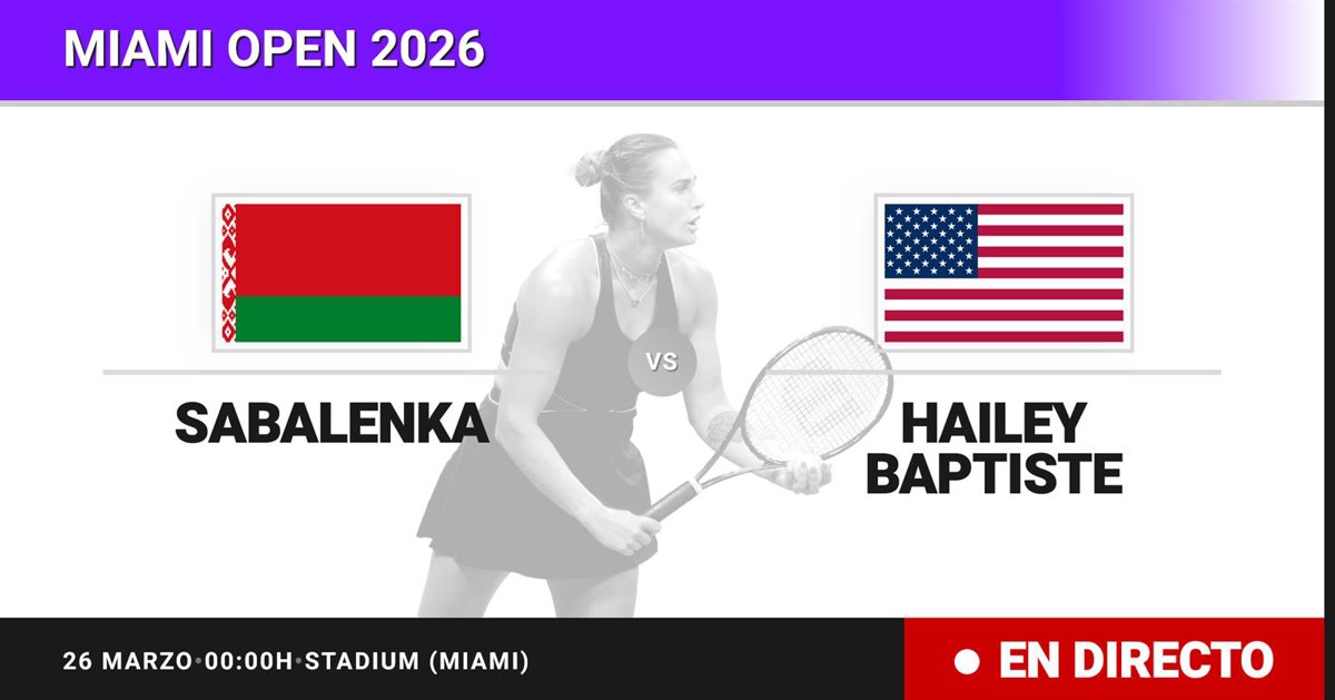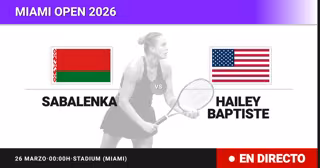 La tenista Bielorrusa Aryna Sabalenka(1) se enfrenta en Cuartos de final del torneo Miami Open a la tenista Estadounidense Hailey Baptiste(45) este jueves a las 00:00.