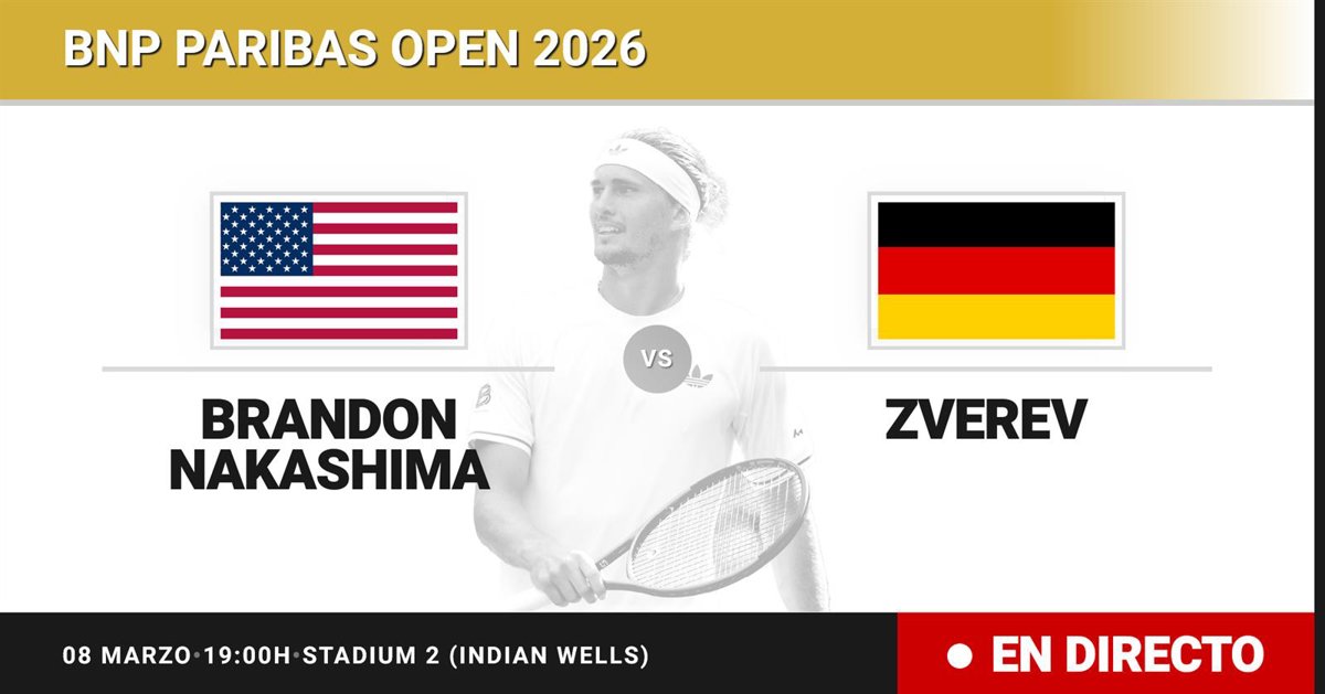 El tenista Estadounidense Brandon Nakashima(30) se enfrenta en Dieciseisavos de final del torneo BNP Paribas Open al tenista Alemán Alexander Zverev(4) este domingo a las 19:00.
