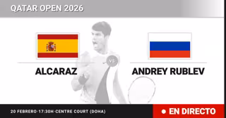 El tenista Español Carlos Alcaraz(1) se enfrenta en Semifinal del torneo Qatar Open al tenista Ruso Andrey Rublev(14) este viernes a las 17:30.