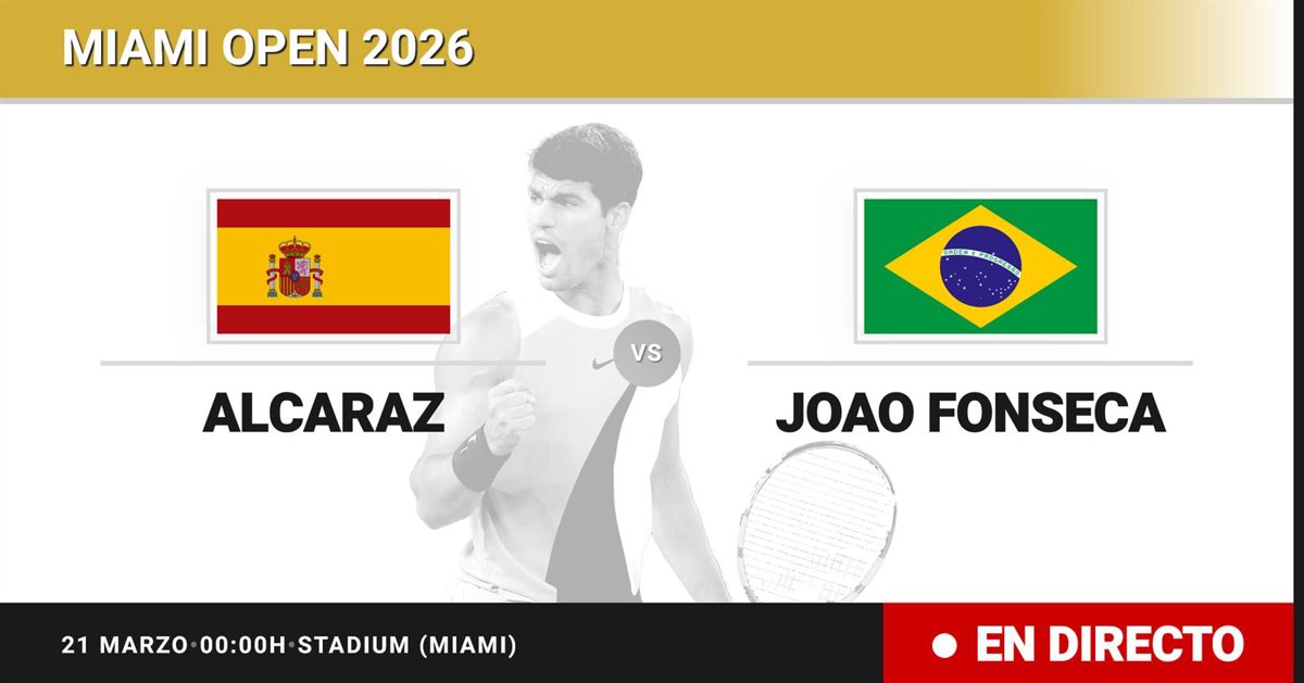 El tenista Español Carlos Alcaraz(1) se enfrenta en Treintaidosavos de final del torneo Miami Open al tenista Brasileño Joao Fonseca(39) este sábado a las 00:00.