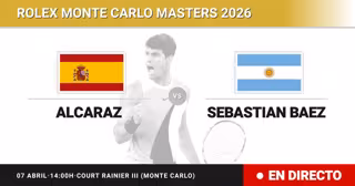 El tenista Español Carlos Alcaraz(1) se enfrenta en Dieciseisavos de final del torneo Rolex Monte Carlo Masters al tenista Argentino Sebastian Baez(65) este martes a las 14:00.
