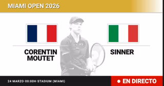 El tenista Francés Corentin Moutet(33) se enfrenta en Dieciseisavos de final del torneo Miami Open al tenista Italiano Jannik Sinner(2) este martes a las 00:00.