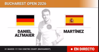 El tenista Alemán Daniel Altmaier(52) se enfrenta en Dieciseisavos de final del torneo Bucharest Open al tenista Español Pedro Martinez(113) este martes a las 17:15.