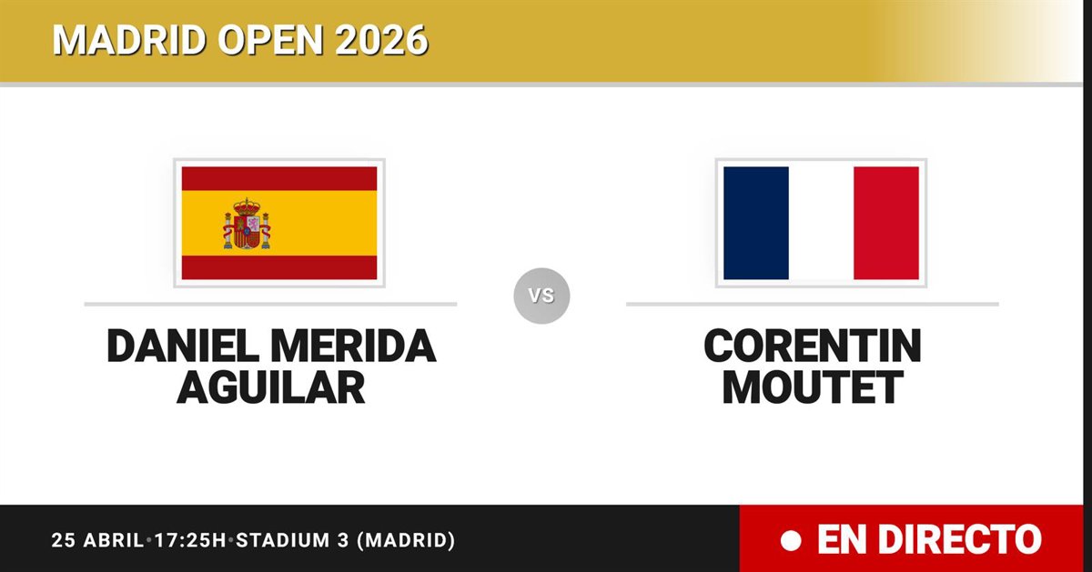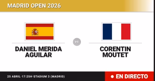 El tenista español Daniel Merida Aguilar(102) se enfrenta en Treintaidosavos de final del torneo Madrid Open al tenista Francés Corentin Moutet(30) este sábado a las 17:25.