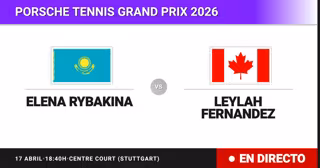 La tenista Kazaja Elena Rybakina(2) se enfrenta en Cuartos de final del torneo Porsche Tennis Grand Prix a la tenista Canadiense Leylah Fernandez(25) este viernes a las 18:40.
