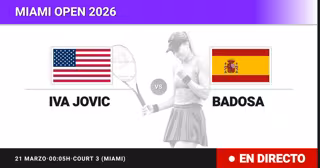 La tenista Estadounidense Iva Jovic(17) se enfrenta en Treintaidosavos de final del torneo Miami Open a la tenista Española Paula Badosa(100) este sábado a las 00:05.
