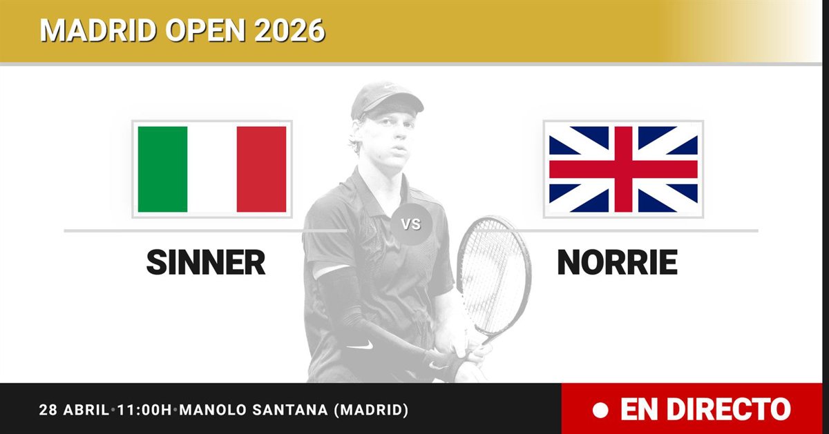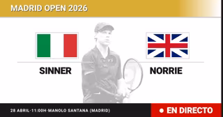 El tenista italiano Jannik Sinner(1) se enfrenta en Octavos de final del torneo Madrid Open al tenista Británico Cameron Norrie(23) este martes a las 11:00.