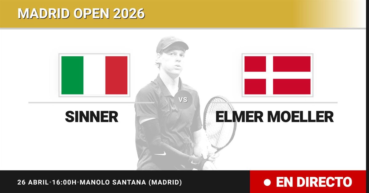 El tenista italiano Jannik Sinner(1) se enfrenta en Dieciseisavos de final del torneo Madrid Open al tenista danés Elmer Moeller(169) este domingo a las 16:00.