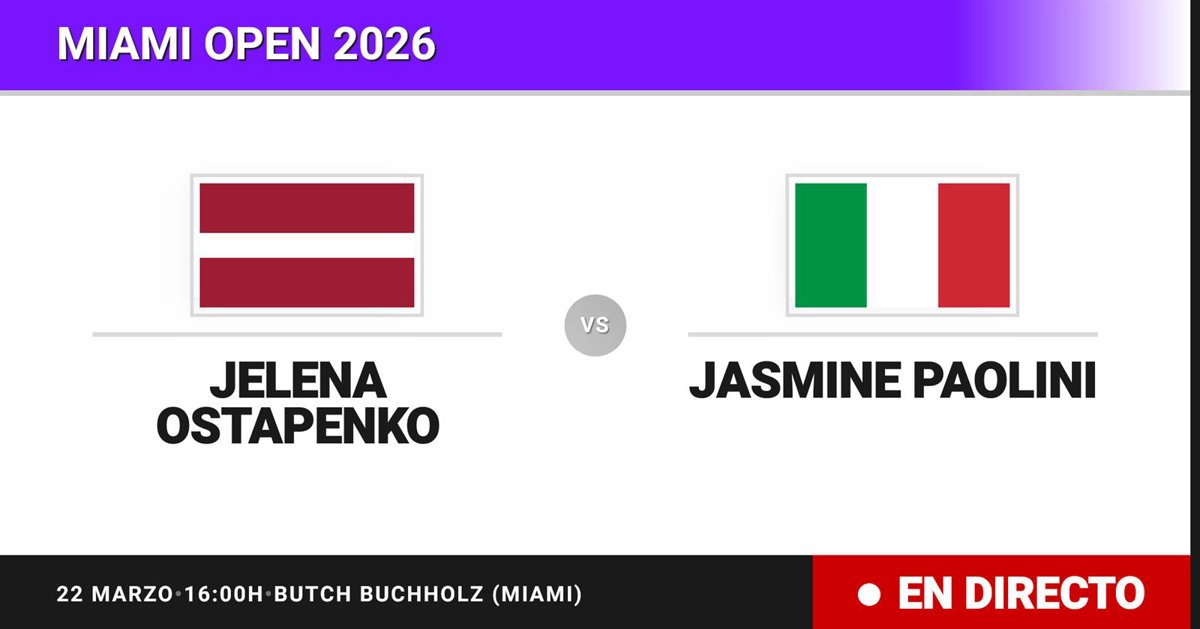 La tenista Letona Jelena Ostapenko(24) se enfrenta en Dieciseisavos de final del torneo Miami Open a la tenista Italiana Jasmine Paolini(7) este domingo a las 16:00.