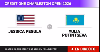 La tenista Estadounidense Jessica Pegula(5) se enfrenta en Dieciseisavos de final del torneo Credit One Charleston Open a la tenista Kazaja Yulia Putintseva(72) este miércoles a las 18:30.