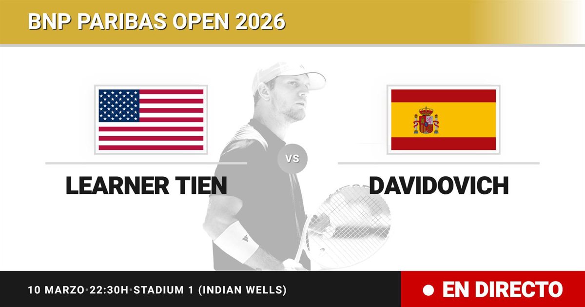 El tenista Estadounidense Learner Tien(27) se enfrenta en Octavos de final del torneo BNP Paribas Open al tenista Español Alejandro Davidovich Fokina(19) este martes a las 22:30.