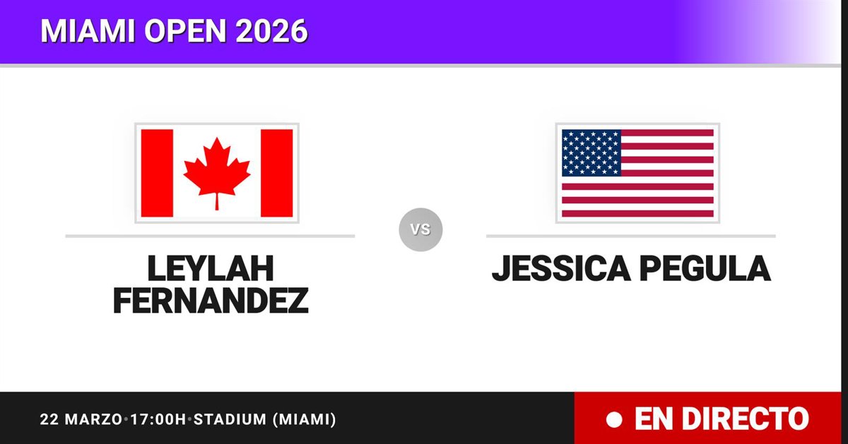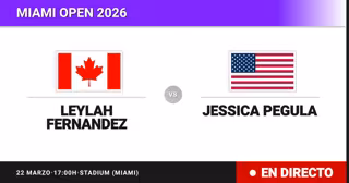 La tenista Canadiense Leylah Fernandez(25) se enfrenta en Dieciseisavos de final del torneo Miami Open a la tenista Estadounidense Jessica Pegula(5) este domingo a las 17:00.