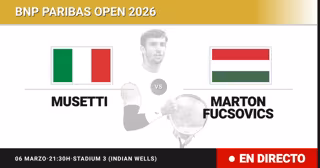 El tenista Italiano Lorenzo Musetti(5) se enfrenta en Treintaidosavos de final del torneo BNP Paribas Open al tenista Húngaro Marton Fucsovics(56) este viernes a las 21:30.