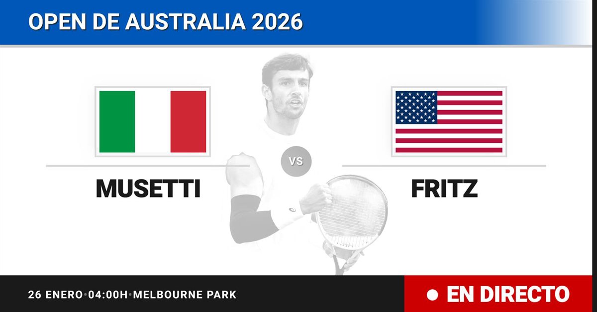El tenista Italiano Lorenzo Musetti(5) se enfrenta en Octavos de final del torneo Australian Open ATP al tenista Estadounidense Taylor Fritz(9) este lunes a las 04:00.