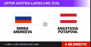 La tenista Rusa Mirra Andreeva(10) se enfrenta en Final del torneo Upper Austria Ladies Linz a la tenista Austriaca Anastasia Potapova(97) este domingo a las 14:00.