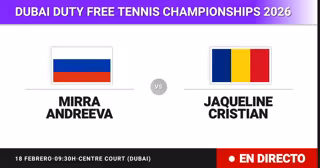 La tenista Rusa Mirra Andreeva(7) se enfrenta en Octavos de final del torneo Dubai Duty Free Tennis Championships a la tenista Rumana Jaqueline Cristian(39) este miércoles a las 09:30.