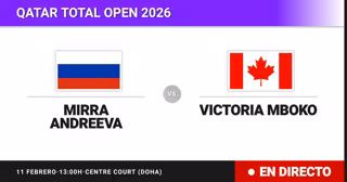 La tenista Rusa Mirra Andreeva(7) se enfrenta en Octavos de final del torneo Qatar Total Open a la tenista Canadiense Victoria Mboko(13) este miércoles a las 13:00.
