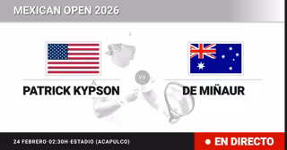 El tenista Estadounidense Patrick Kypson(103) se enfrenta en Dieciseisavos de final del torneo Mexican Open al tenista Australiano Alex de Minaur(6) este martes a las 02:30.