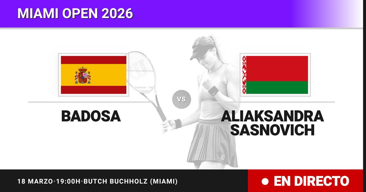 La tenista Española Paula Badosa(100) se enfrenta en Sesentaicuatroavos de final del torneo Miami Open a la tenista Bielorrusa Aliaksandra Sasnovich(116) este miércoles a las 19:00.