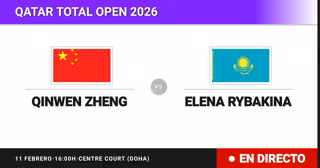 La tenista China - China Qinwen Zheng(26) se enfrenta en Octavos de final del torneo Qatar Total Open a la tenista Kazaja Elena Rybakina(3) este miércoles a las 16:00.