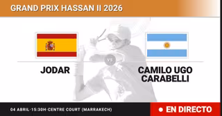 El tenista Español Rafael Jodar(89) se enfrenta en Semifinal del torneo Grand Prix Hassan II al tenista Argentino Camilo Ugo Carabelli(67) este sábado a las 15:30.