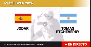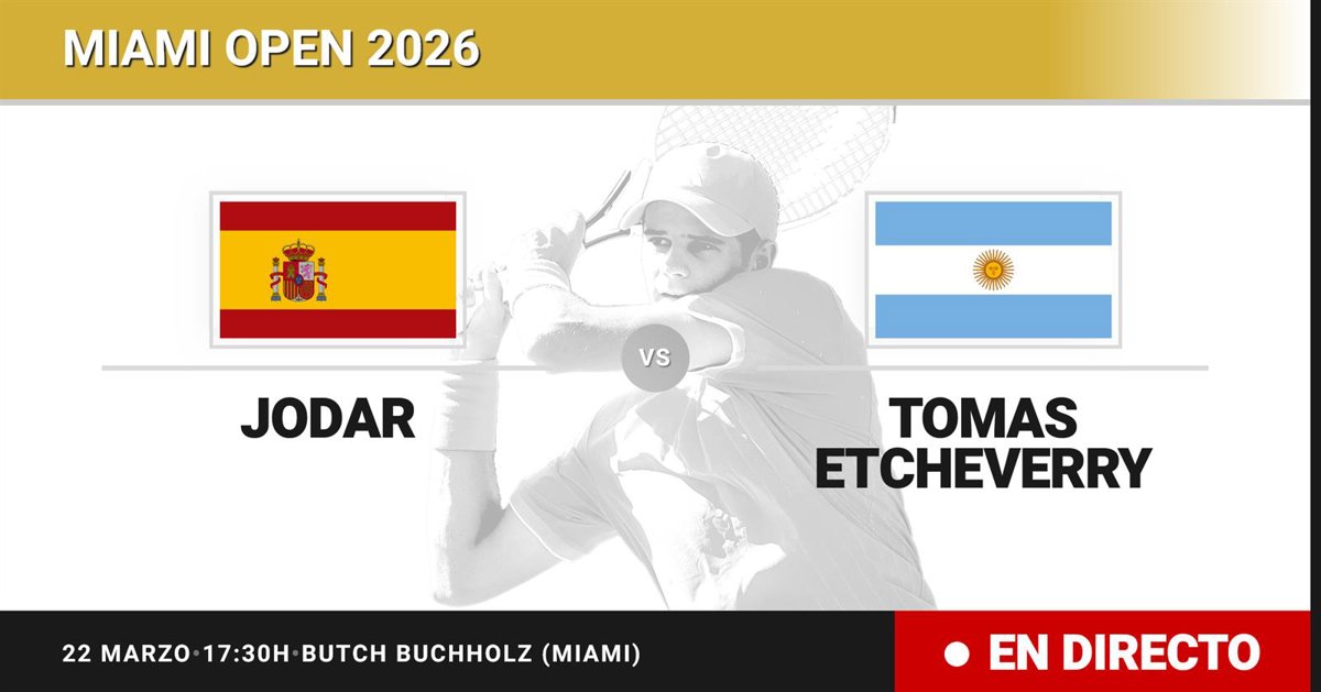 El tenista Español Rafael Jodar(109) se enfrenta en Dieciseisavos de final del torneo Miami Open al tenista Argentino Tomas Etcheverry(32) este domingo a las 17:30.