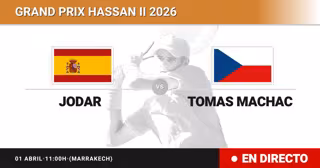 El tenista Español Rafael Jodar(89) se enfrenta en Octavos de final del torneo Grand Prix Hassan II al tenista Checo Tomas Machac(55) este miércoles a las 11:00.