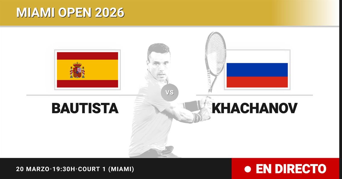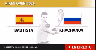El tenista Español Roberto Bautista Agut(89) se enfrenta en Treintaidosavos de final del torneo Miami Open al tenista Ruso Karen Khachanov(15) este viernes a las 19:30.