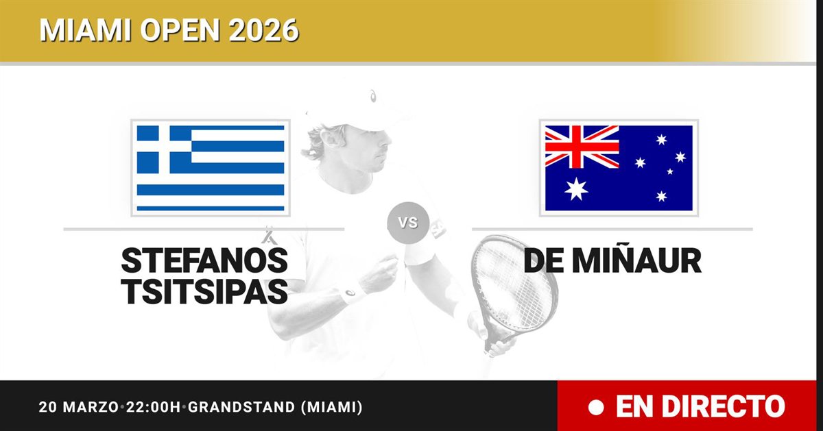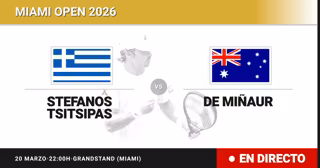El tenista Griego Stefanos Tsitsipas(51) se enfrenta en Treintaidosavos de final del torneo Miami Open al tenista Australiano Alex de Minaur(6) este viernes a las 22:00.