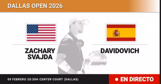 El tenista Estadounidense Zachary Svajda(110) se enfrenta en Dieciseisavos de final del torneo Dallas Open al tenista Español Alejandro Davidovich Fokina(14) este lunes a las 20:30.