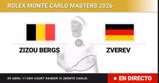 El tenista Belga Zizou Bergs(47) se enfrenta en Octavos de final del torneo Rolex Monte Carlo Masters al tenista Alemán Alexander Zverev(3) este jueves a las 11:00.