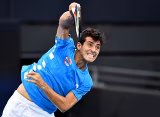 El chileno Cristian Garín ejecuta un saque durante un torneo - Darren England/AAP/dpa - Archivo