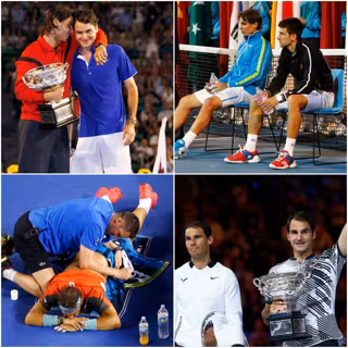 -2012: La final más larga de la historia del 'Grand Slam'. Para llegar a su segunda final, Nadal remontó a Federer. Sin embargo, por aquel entonces el clásico del tenis comenzaba a ser su cita con Djokovic. El serbio le había ganado en 2011 las finales de Wimbledon y US Open, y le ganó también la australiana, su séptima victoria seguida sobre Nadal, todas finales de torneos.