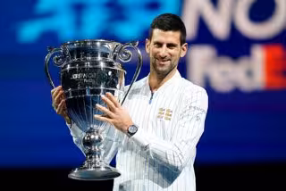 Novak Djokovic tras recibir el trofeo que le acredita como número uno del año en el ranking de la ATP en 2020 - John Walton/PA Wire/dpa - Archivo