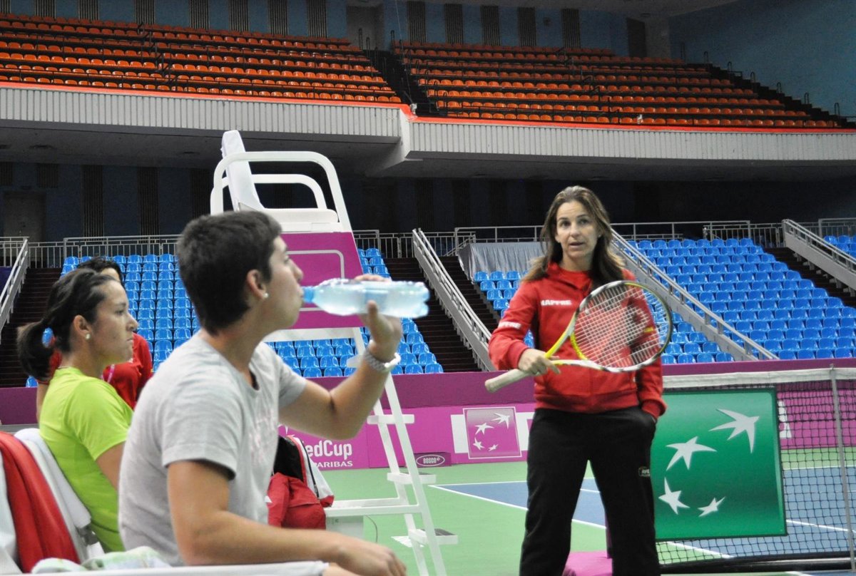 La selección española femenina de tenis tomó este martes contacto con la pista del Estadio Olímpico de Moscú, donde los próximos sábado y domingo disputa la eliminatoria de los cuartos de final del Grupo Mundial de la Copa Federación ante Rusia.