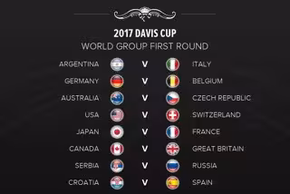 El equipo español de Copa Davis vivirá un duro retorno al Grupo Mundial, ya que el bombo ha dictaminado que Croacia, finalista de la actual edición del torneo, será su primer rival en 2017, con la dificultad añadida de disputar la eliminatoria en tierras balcánicas.