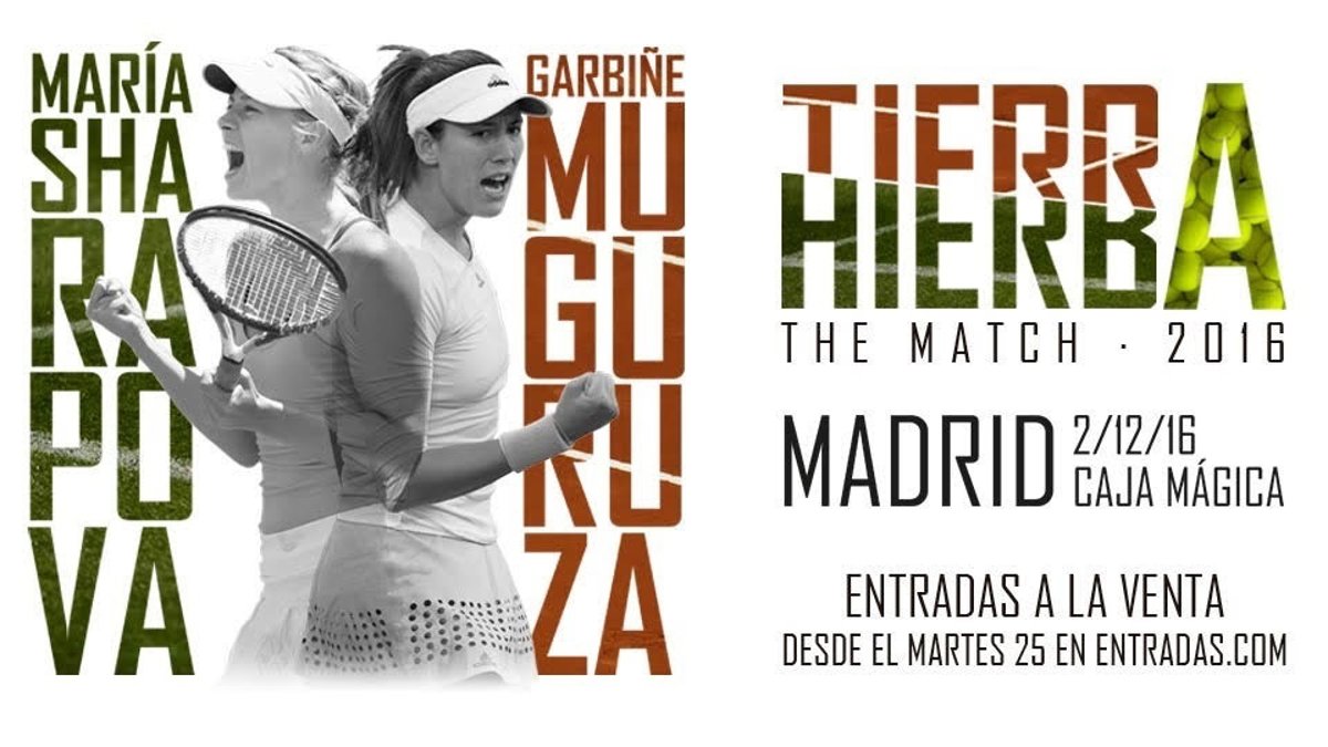 La tenistas Garbiñe Muguruza y Maria Sharapova se medirán el 2 de diciembre en la Caja Mágica en un duelo de exhibición peculiar, en el que la Pista Central Manolo Santana se verá dividida en dos superficies diferentes, una de hierba y otra de tierra batida.