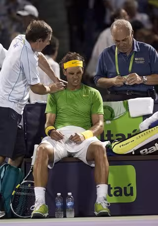 Nadal, que tuvo que salvar tres bolas de 'break' en los primeros compases de la tercera manga, necesitó asistencia médica por las continuas molestias en el brazo y el hombro derecho.