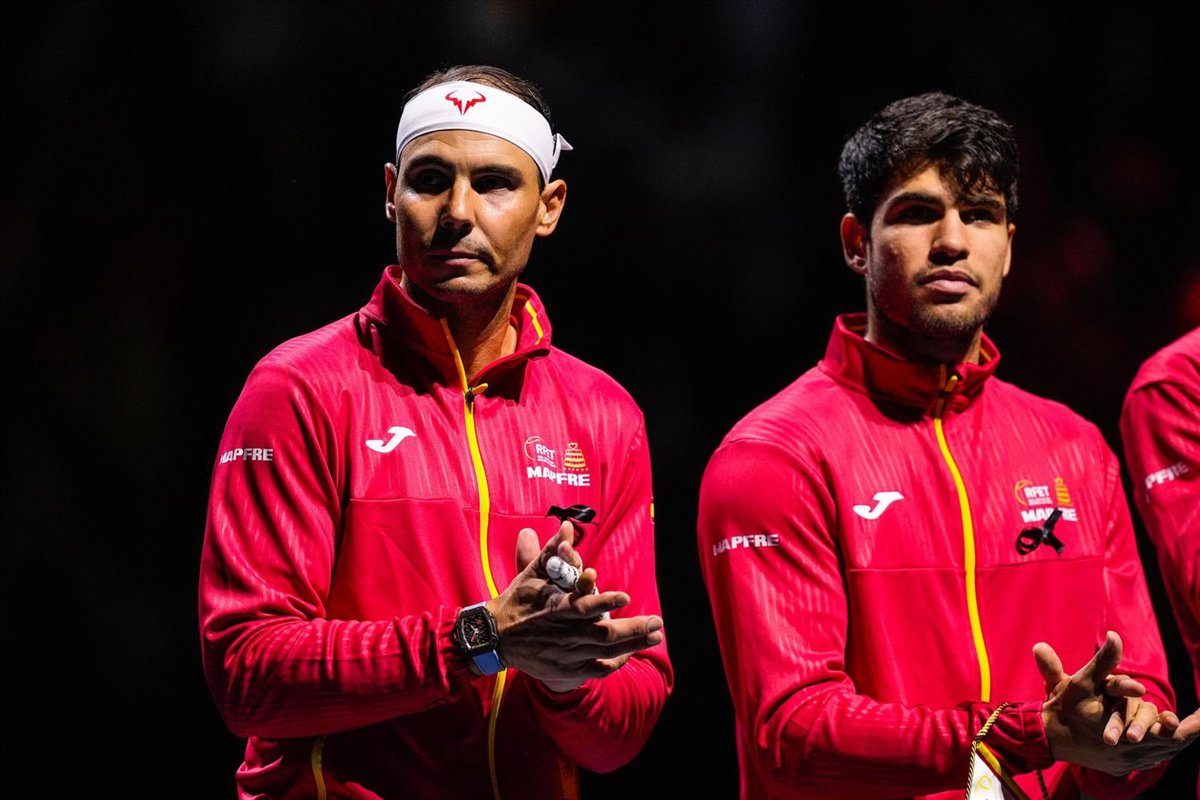 Archivo - Rafa Nadal junto a Carlos Alcaraz en la Copa Davis 2024 - Oscar J. Barroso / AFP7 / Europa Press - Archivo