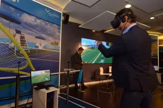 El propio Nadal experimentó en persona el juego de realidad virtual jugando contra sí mismo durante la presentación en la 'Telefónica Flagship Store' de la madrileña calle de Gran Vía en Madrid.